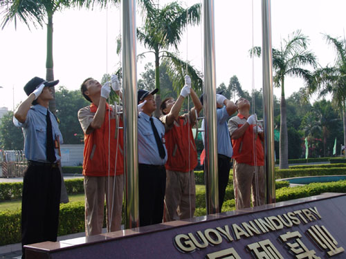 上午8时整,在雄壮的国歌声中,公司升旗仪式暨运动会开幕式拉开序幕,公司全体员工怀着激动的心情齐集旗下歌唱祖国美好的未来。国旗司旗在公司上空高高飘扬,鲜艳的五星红旗在初晨阳光的照耀下显得分外绚丽夺目。