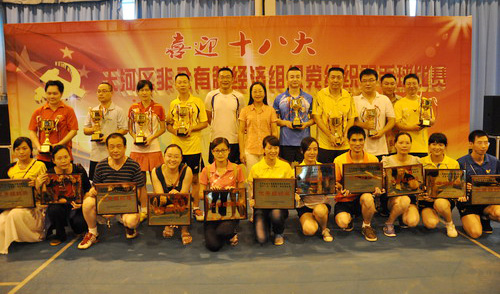 10月28日,由天河区非公有制经济组织党工委举办的“喜迎十八大”羽毛球比赛在赛马场伟盛羽毛球馆举行。我司由王永强、李运喜、谢芸宇、曹乙香、刘鹏、邹信祥组成的羽毛球代表队获得优秀组织奖。